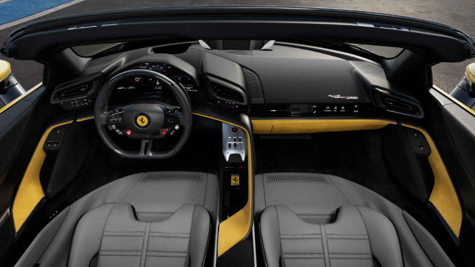 در فضای کابین فراری 849 تستاروسا با طرحی راننده-محور مواجه هستیم، که دکمههای فیزیکی، صندلیهای قابل سفارش در دو تیپ اسپرت یا کامفورت، شارژر بیسیم و پشتیبانی نمایشگر از اپل کارپلی، اندروید اتو و MyFerrari، اشاره کرد. در بخش پشت صندلیهای اسپایدر، بادگیر نصب شده است تا از ایجاد اغتشاش جریان هوا در کابین، جلوگیری بشود.