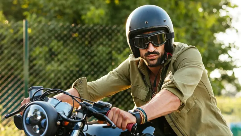 استفاده از کلاه ایمنی موتورسیکلت به منظور حفاظت از سر و صورت راکب، یک امر بسیار ضروری است. این وسیله میتواند در کاهش خطرات مرتبط با تصادفات موتورسیکلت مؤثر باشد. در هنگام استفاده از کلاه کاسکتهای موتورسیکلت بدون فک و شیشه، میتوان از عینک هم استفاده کرد که از چشمها و صورت در برابر جریان باد و نور خورشید، محافظت میکند. برخی از این عینکها برای استفاده در ورزشهای اسکی و اسکیتسواری نیز مناسب است.