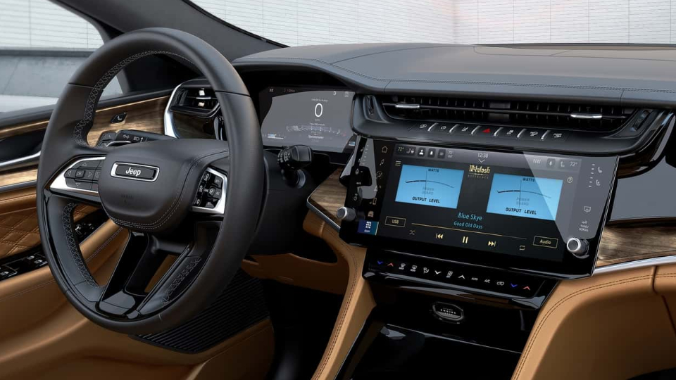ابعاد نمایشگر لمسی جیپ گرند چروکی 2026 به 12.3 اینچ افزایش یافته، درحالیکه نمایشگر 13 اینچ برای سرنشین جلو نیز قابل سفارش است.