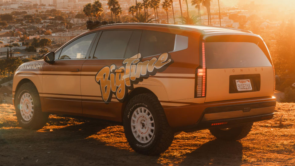 هیوندای آیونیک 9 آفرود در بخش Future Tech از نمایشگاه SEMA حضور دارد که نوآوری خودروهای برقی را نمایش میدهد. در نگاه اول، تعلیق مرتفع، تایرهای آفرود و چراغهای سقفی، جلب نظر میکند. اما از اینها که بگذریم، باید به طراحی جعبهای بدنه هیوندای آیونیک 9 آفرود اشاره کرد که مخصوصا در بخش عقب، فرم خوشایند خودروهای دهه 90 میلادی را به یاد میآورد. این فرم ساده در کنار نحوه رنگآمیزی بدنه و فونت BigTime در نمای جانبی، طرحی مدرن و در عین حال خاطرهانگیز را نمایش میدهد.