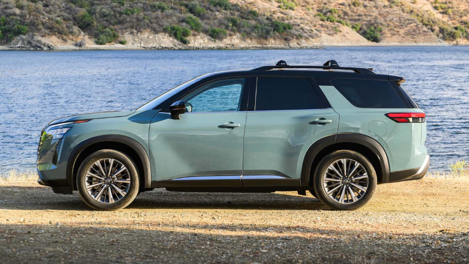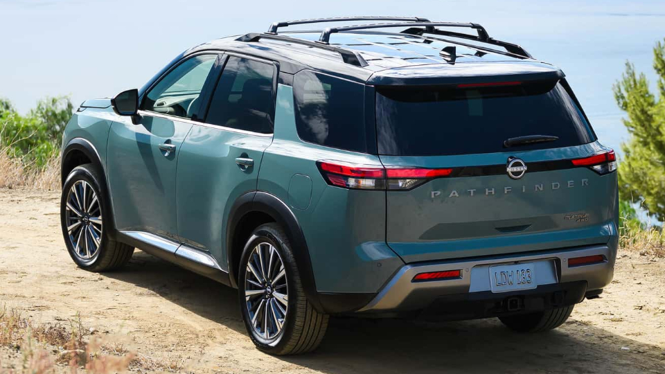 پتفایندر 2026 در نمای جلو تغییراتی نهچندان بزرگ اما تاثیرگذار شامل حذف حاشیه نقرهای را تجربه کرده و حالا بیشتر به مورانو شبیه است. این جلوپنجره تا گوشههای سپر و کمی زیر چراغهای جلو امتداد یافته است. رنگ جدید آبی فیروزهای بالتیک به همراه روکش مات لوگوها و رینگهای 20 اینچ با طراحی جدید نیز برای تیپ پلاتینیوم در دسترس خواهد بود. در تیپهای SL و پلاتینیوم، باربند نقرهای با نمونه مشکی جایگزین شده است.