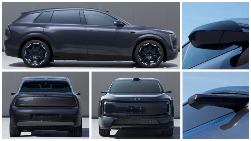 آئودی E7X مدتی پیش و با نام کانسپت E SUV در گوانگژو 2025 به معرض نمایش درآمد. طراحی بدنه آئودی E SUV با قاب مستطیل-شکل در نمای جلو و عقب که چراغهای باریک را در خود جا میدهد، کاملا به E5 اسپرتبک شبیه است درحالیکه محصولات فعلی آئودی در اروپا و سایر بازارها، براساس زبان طراحی کاملا متفاوتی شکل گرفتهاند. چراغهای C-شکل جلو و عقب، دوربینهای جانبی، لیدار روی سقف، دستگیرههای مخفیشونده، رینگهای 21 یا 22 اینچ و البته نشان AUDI، از مهمترین ویژگیهای ظاهری این خودرو بهشمار میآید.