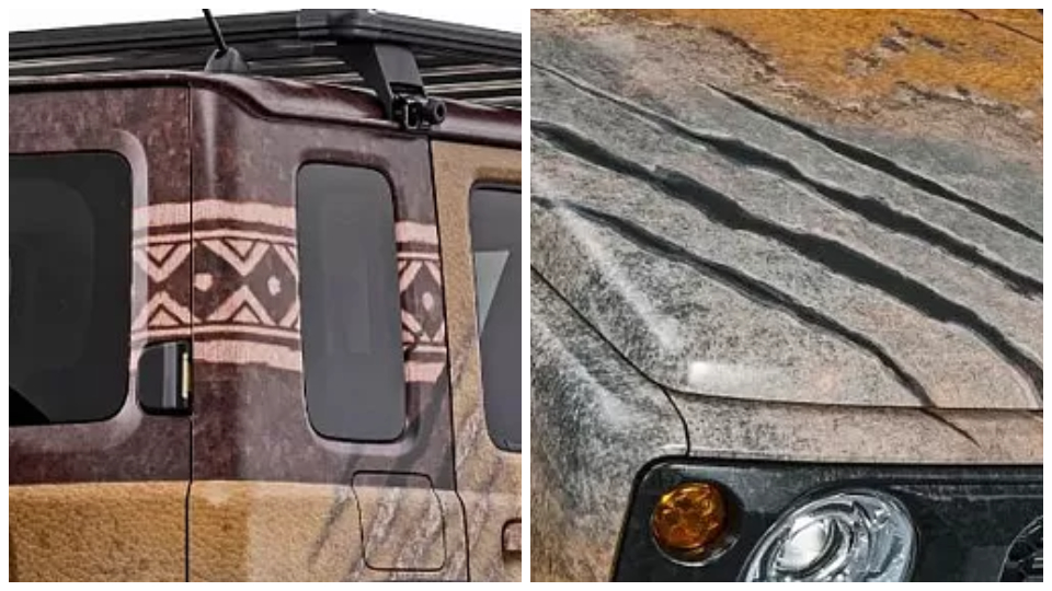 در اولین نگاه به سوزوکی جیمنی Nomade مانستر هانتر وایلدز ادیشن، با روکش خاص بدنه مواجه هستیم که حال و هوای Monster Hunter را به یاد میآورد. توجه داشته باشید که طول و فاصله محوری 3.89 و 2.59 متری تیپ 5 در سوزوکی جیمنی، 34 سانتیمتر از تیپ سه در این خودرو بزرگتر است.