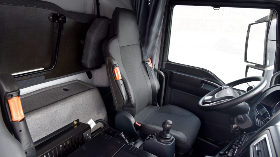 طراحی داخل کابین نیز ساده است و داشبورد این خودرو برای بینندگان آشناست. این داشبورد یک طراحی ساده و نسبتاً قدیمی نسبت به کامیونهای امروزه دارد. اما کیفیت خوبی دارد و مواد استفاده شده برای ساخت آن نیز قابلقبول است. صندلی راننده از نوع بادی قابلتنظیم است و امکان سفارش صندلی بادی قابلتنظیم برای سرنشین نیز وجود دارد. تختخواب در حالت عادی به صورت ایستاده در پشت صندلیهاست و برای استفاده باید وضعیت صندلی شاگرد را تغییر داد که این قضیه به خاطر عمق کم اتاق این خودرو است.