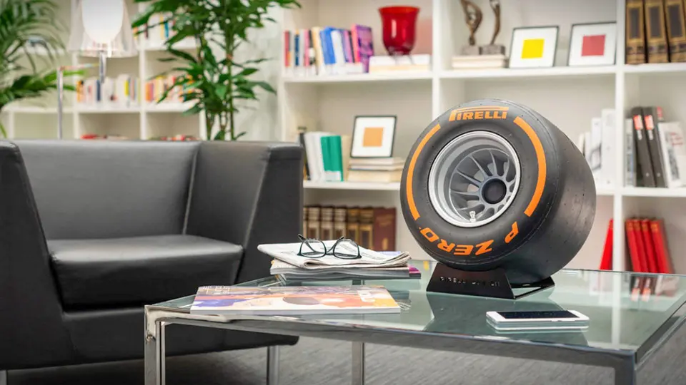 ”قیمت 2400 یورویی این بلندگو، آن را برای بسیاری از مشتریان دست نیافتنی میسازد.“محصول مورد نظر یک بلندگوی بیسیم است که برمبنای سیستم بلوتوث عمل میکند و از نظر ظاهری مطابق با چرخ خودروهای شرکتکننده در مسابقات فرمول یک است. البته اندازه این بلندگو نصف ابعاد نمونه واقعی یک تایر ساخته شده و قرار است در نه طیف رنگی عرضه شود، که در این مورد هم از ترکیب رنگهای متداول در خودروهای فرمول یک استفاده شده است.