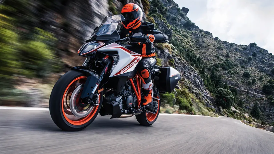”مدل 2019 سوپر دوک جیتی به تعلیق هوشمندی مجهز شده که متناسب با وزن موتورسوار، سفتی کمکها را تغییر میدهد.“مهمترین تغییر رخ داده در GT 2019 را باید در چهره جدیدش ببینید؛ چهرهای که حالا مشابه نسخههای جدید Super Duke R طراحی شده. علاوهبر تغییر چراغهای جلو، کیتیام همچنین طلق جلو را هم تغییر داده تا بهتر بتواند جریان هوا را در طرفین موتورسیکلت، پخش کند. فلاپهای اطراف باک نیز حجیمتر شدهاند و جالبتر اینکه حالا میتوان از آنها برای قرار دادن اشیا بسیار کوچک نیز استفاده کرد. یک پورت USB نیز درون این فلاپها، جاسازی شده است.
