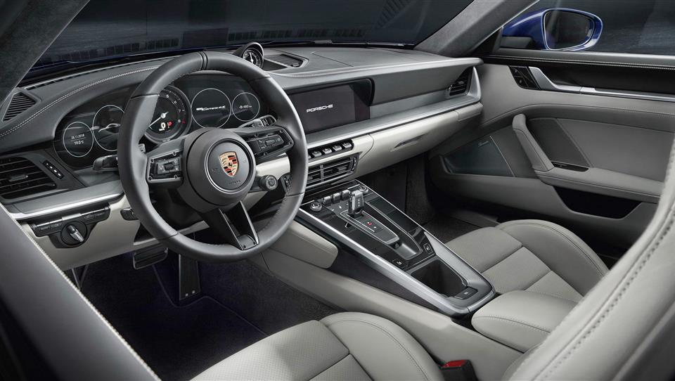 داخل کابین، تغییرات محسوستر هستند. بهعنوانمثال میتوان صفحه کیلومتر و آمپرهای جدید، دستهدنده بهروز شده و یک صفحهنمایش بزرگتر 10.9 اینچی را مطرح کرد. پورشه میگوید در طراحی زاویهدارتر داشبورد از 911 های دهه 70 میلادی الهام گرفته شده است. افزایش اندک طول بین دو محور و از سویی دیگر، افزایش 45 میلیمتری طول بین دو چرخ جلو فضای سرنشین را داخل کابین افزایش داده است.