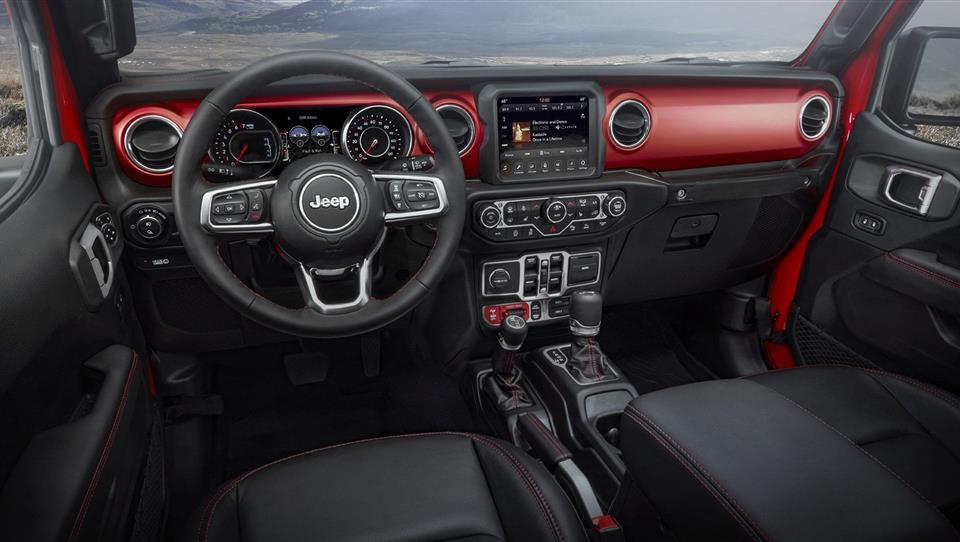 در فضای داخلی گلادیاتور، اولین چیزی که نظر شما را جلب میکند داشبورد تخت آن است. همانند مدل رانگلر آنلیمیتد، گلادیاتور هم در ردیف عقب فضای پای بسیار خوبی دارد. اما زمانی که درها را جدا کردهاید و سقف را برداشتهاید، میتوانید از محفظههایی که زیر قسمت نشیمنگاه صندلیهای عقب تعبیه شده به عنوان مکانی امن برای وسایلتان استفاده کنید.