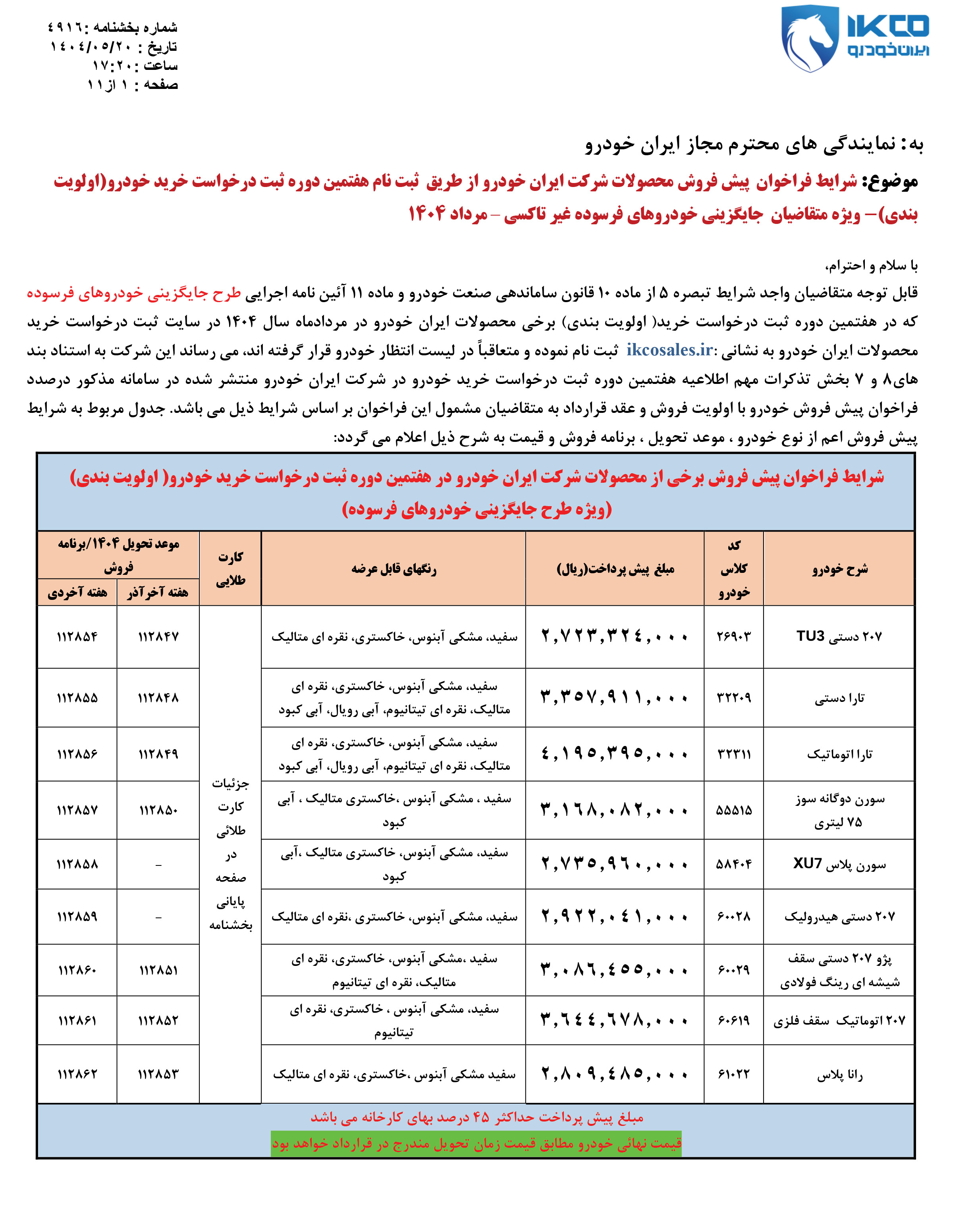 فراخوان طرح نوسازی ایران خودرو - فروش فوق العاده (PDF)