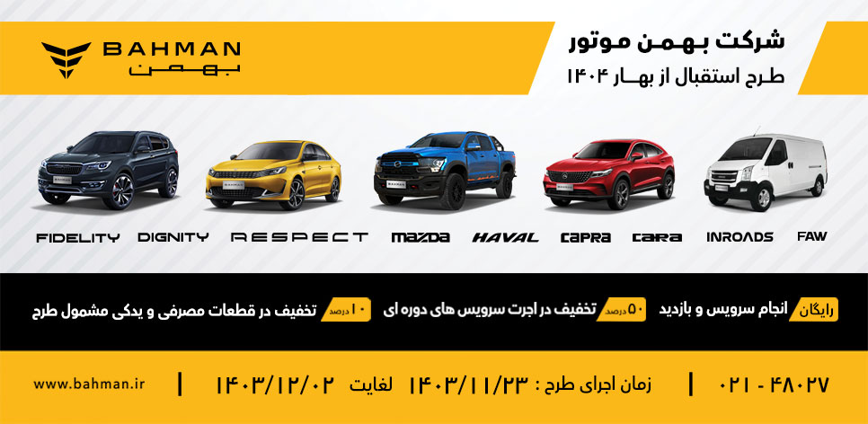 همچنین در مقاله سرویس ادواری بهمن موتور میتوانید آخرین اخبار سرویس محصولات بهمن موتور، شرایط جدید گارانتی خودروهای بهمن و جدیدترین اخبار خدمات پس از فروش شرکت بهمن موتور را مشاهده کنید. اگر شما هم یکی از مالکان محصولات شرکت بهمن موتور هستید، احتمالا خواندن مقالات زیر نیز برایتان مفید خواهد بود: