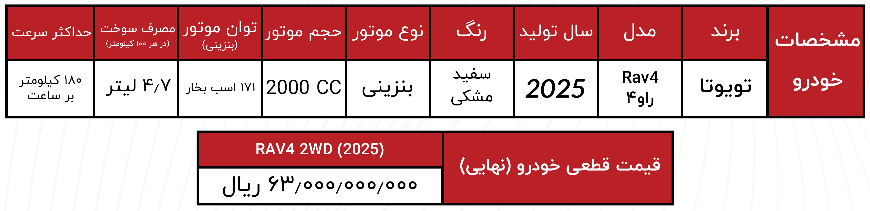 ثبت نام تویوتا راوفور انرژی موتور: بهمن 1404