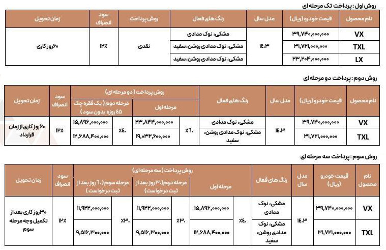 | نام قدیم محصول | LX | TXL | VX |