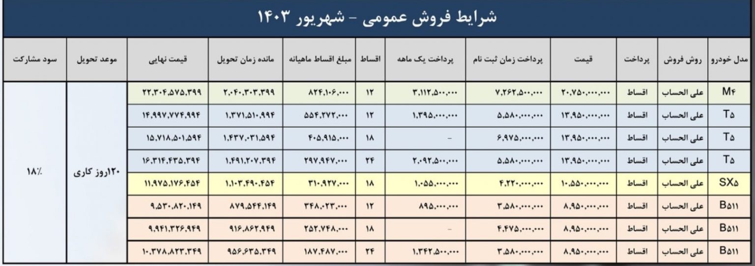 فروش اقساطی اف ام سی: شهریور 1403