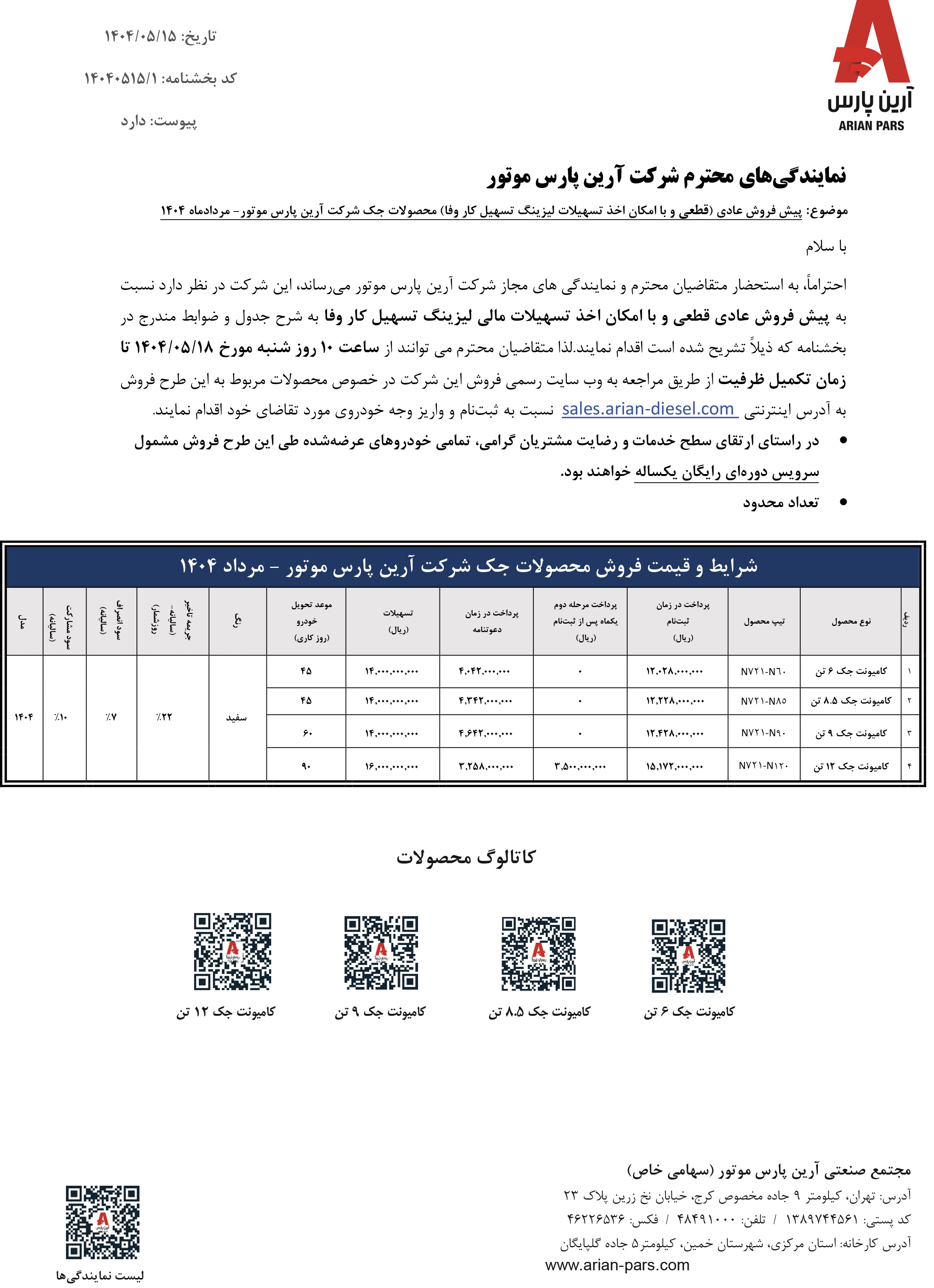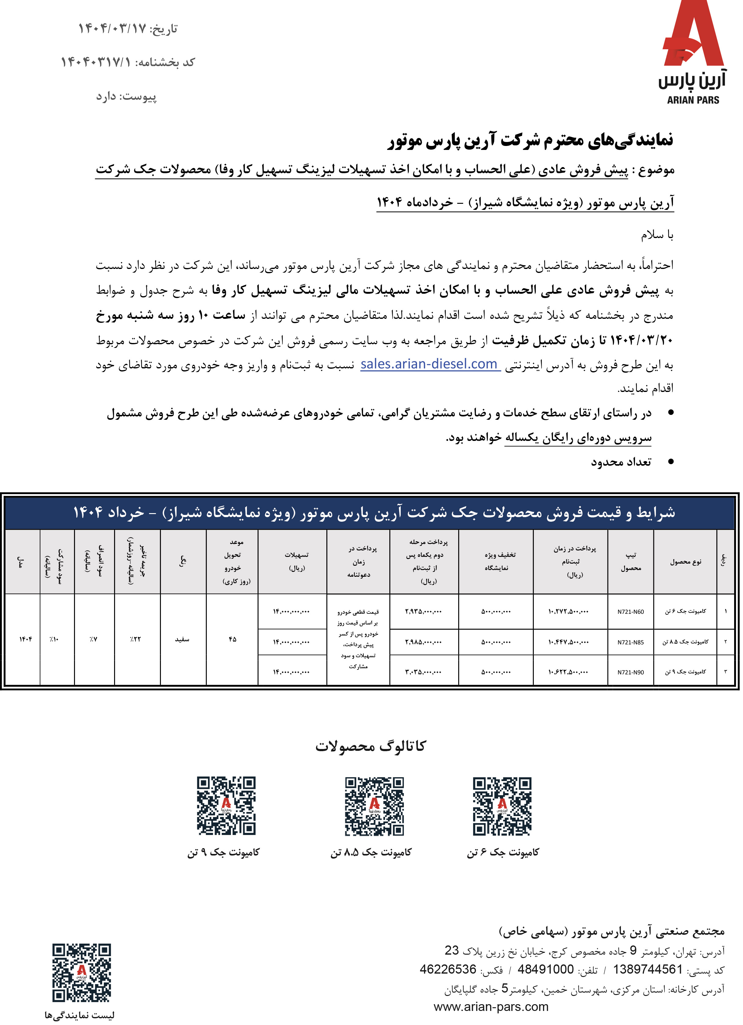 . بخشنامه پیش فروش اقساطی آرین دیزل (PDF)
