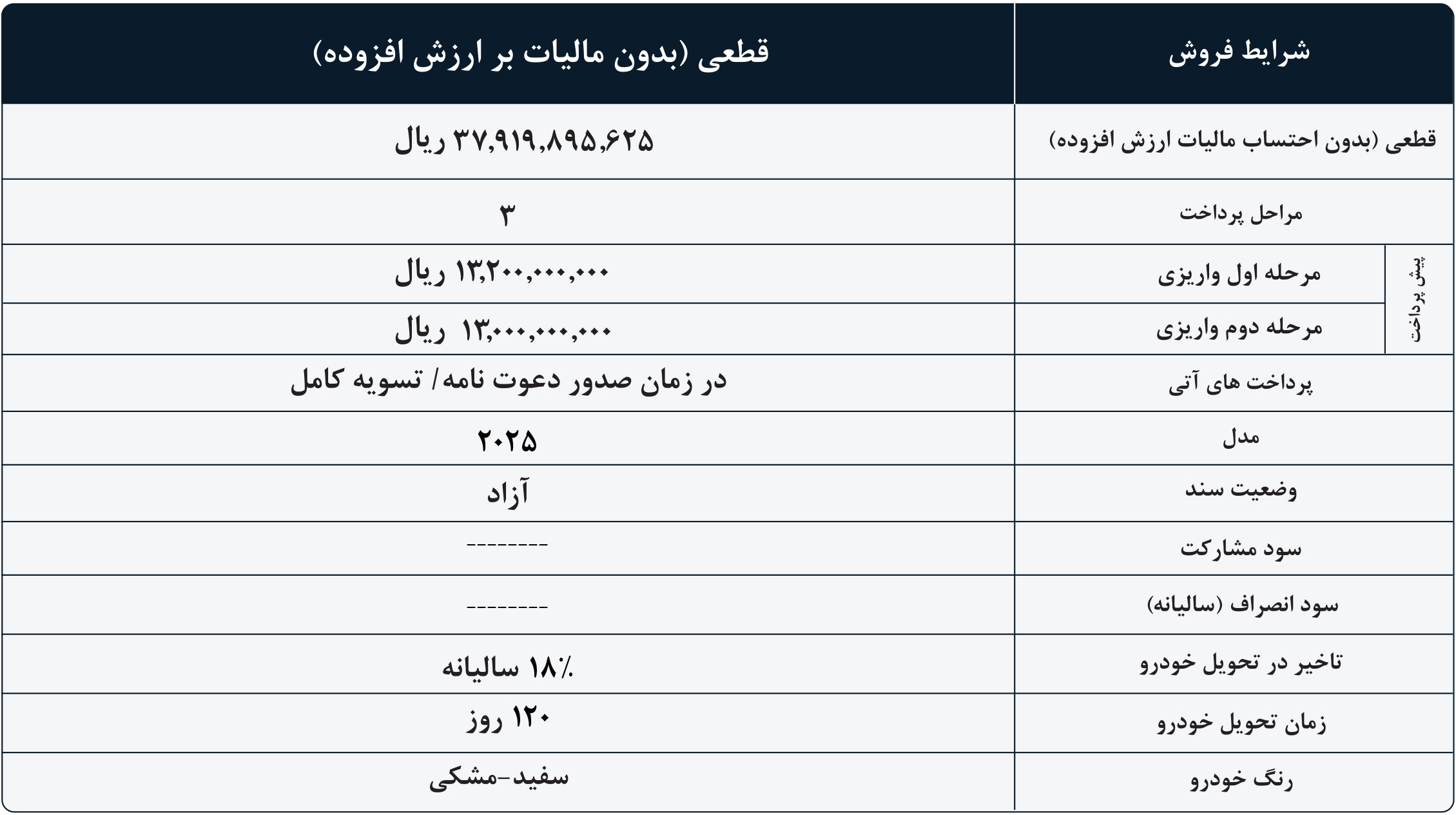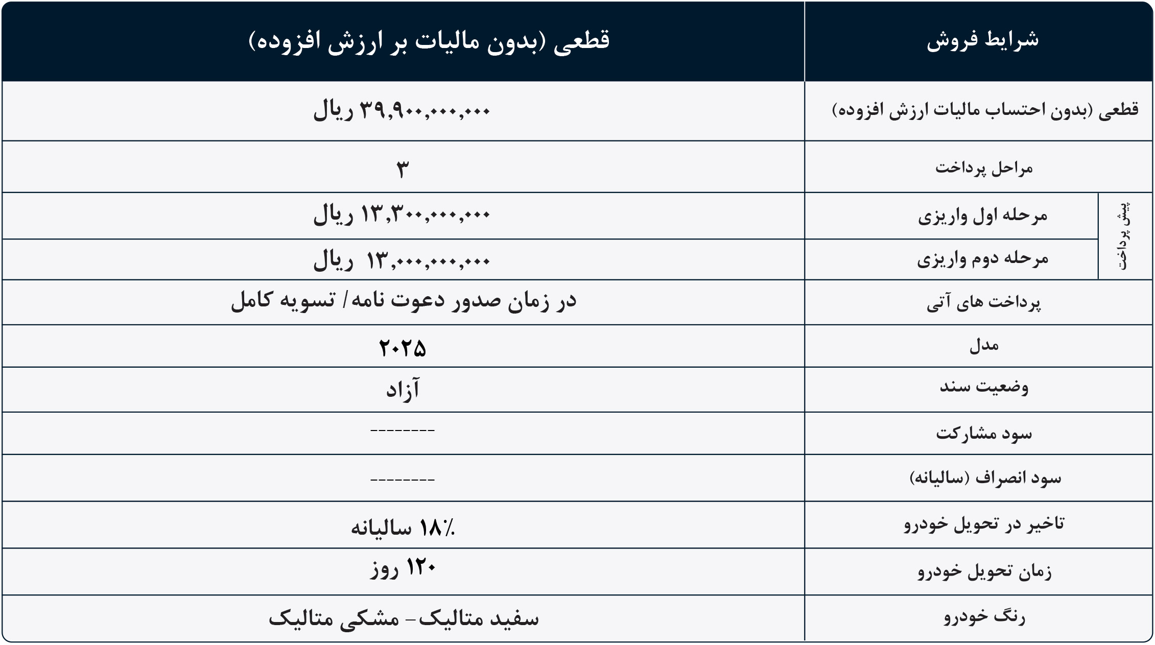 | موعد تحویل | 45 روز کاری | |