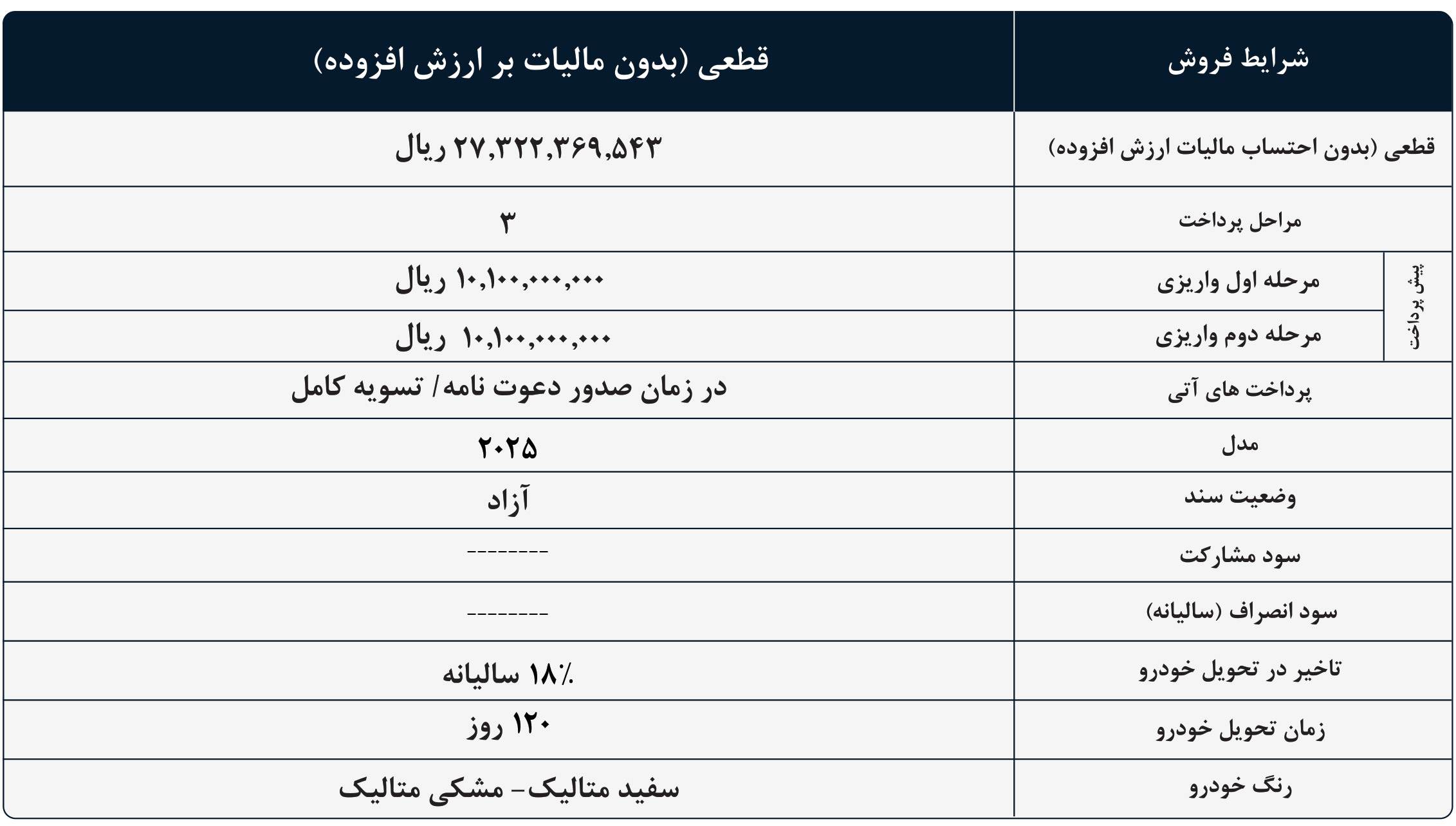 | بازپرداخت | 18 ماهه | 24 ماهه |