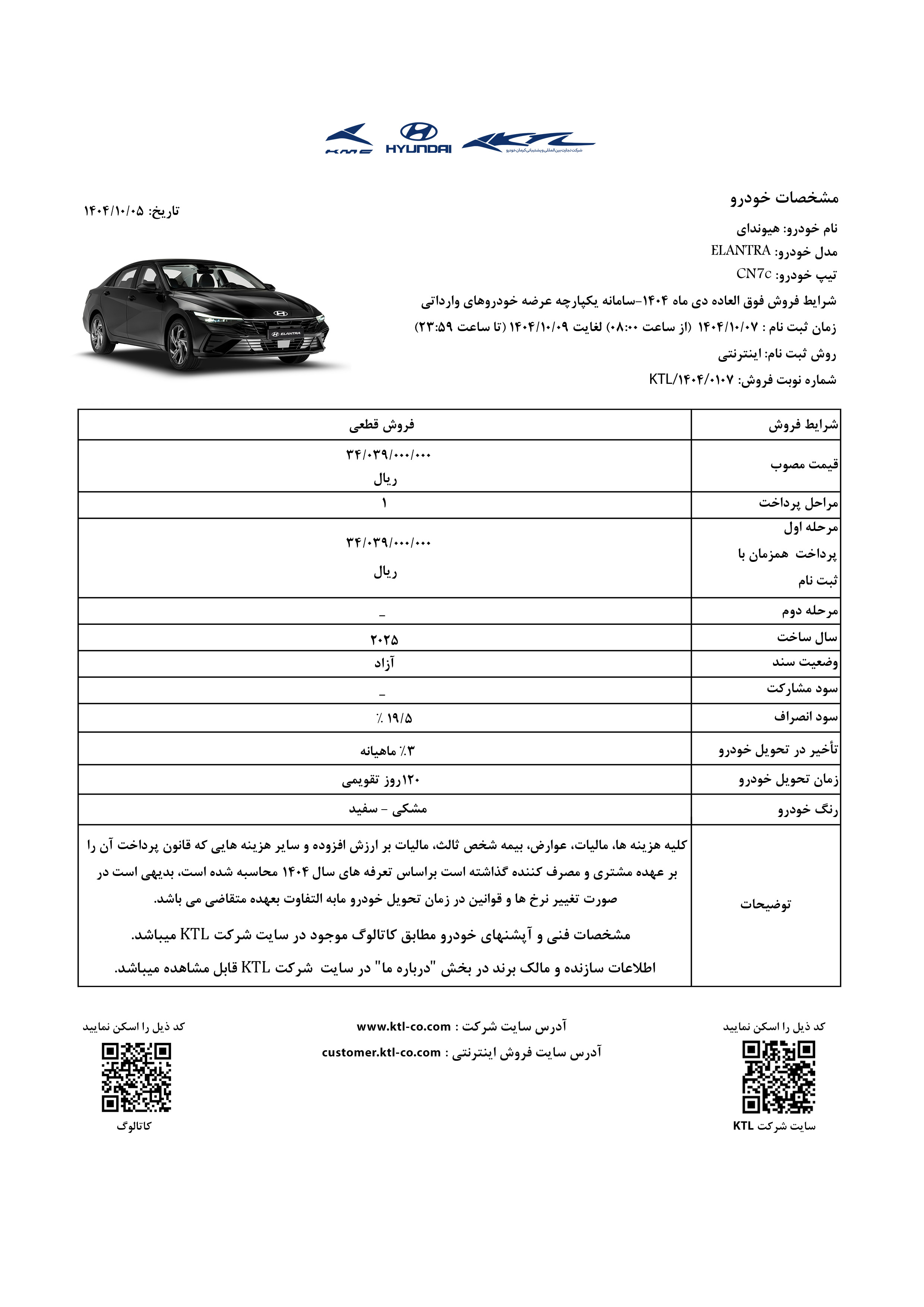 شرکت تجارت بینالمللی و پشتیبانی کرمان خودرو (کیتیال KTL)، نماینده رسمی شرکت هیوندای موتور کره جنوبی در ایران که در دور جدید واردات خودرو در سال گذشته تاکنون دو هزار دستگاه خودرو به بازار عرضه کرده است، از عرضه سه هزار دستگاه خودرو در مدلهای مختلف در ماه آینده خبر داد. خودروهای هیوندای کونا، اکسنت، الانترا و توسان، خودروهایی است که قرار است بزودی توسط شرکت کیتیال KTL به بازار عرضه شود.
