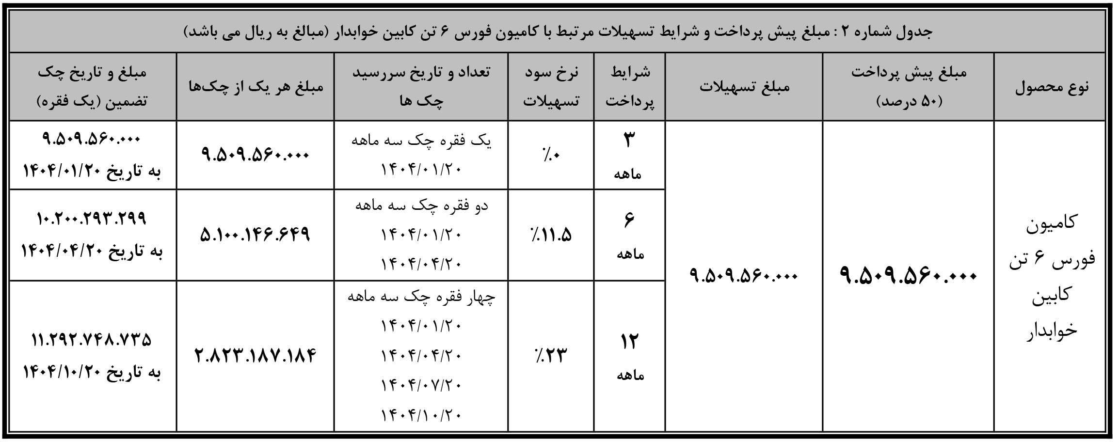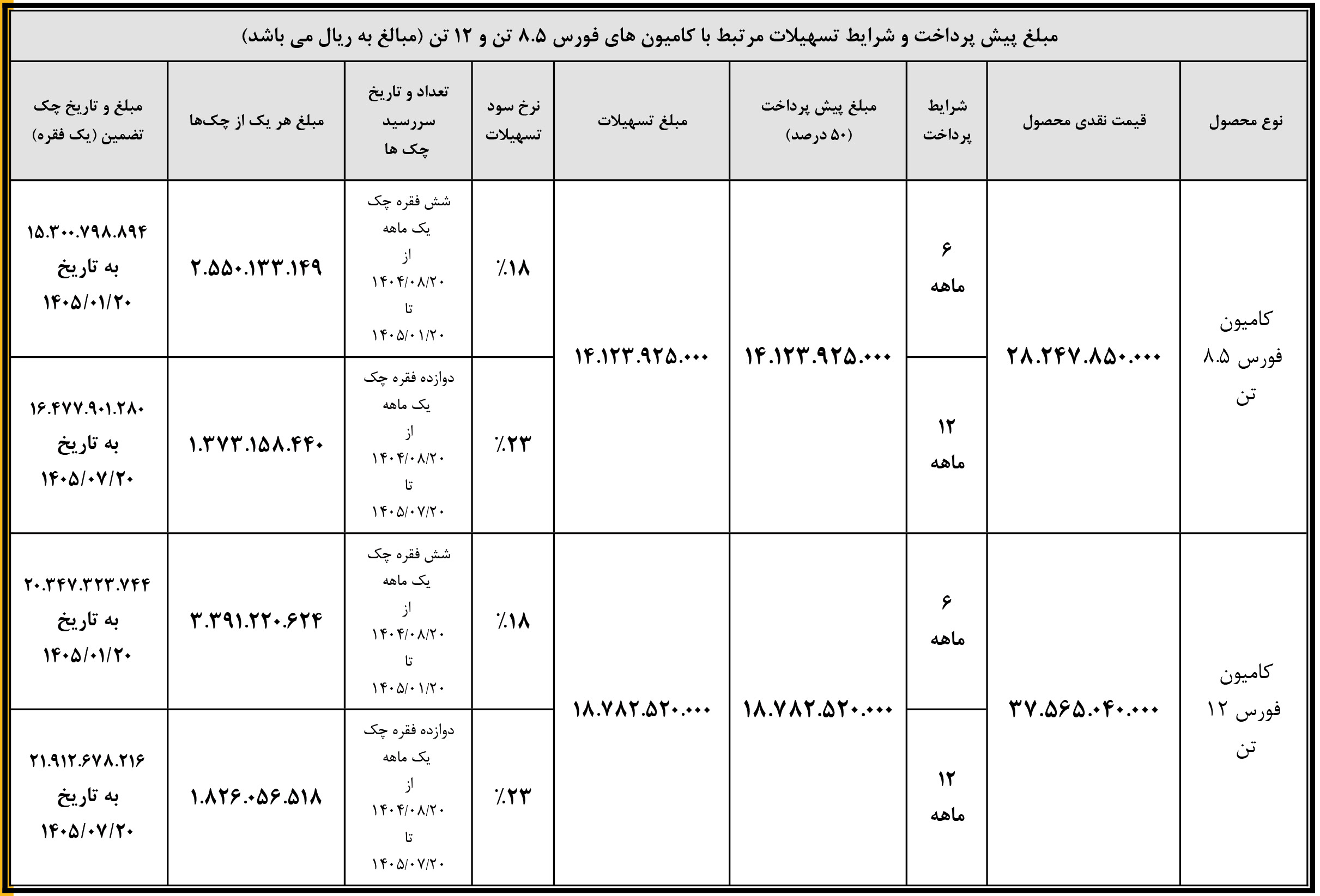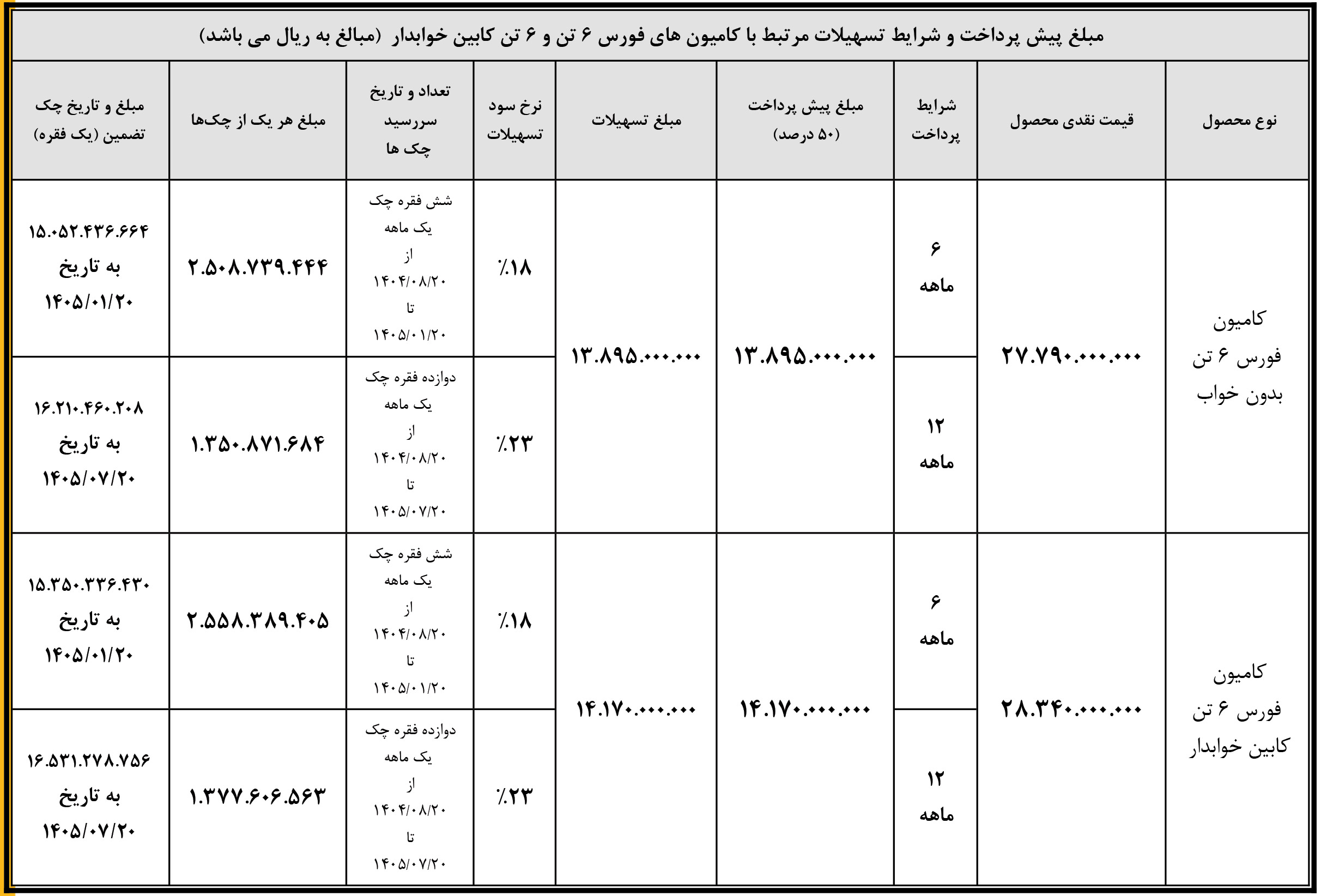 ثبت نام نقدی و اعتباری کامیون فورس: شهریور 1404