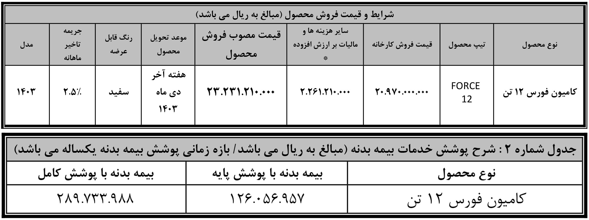 | فورس 12 تن | 2,840,000,000 | 3,190,000,000 |
