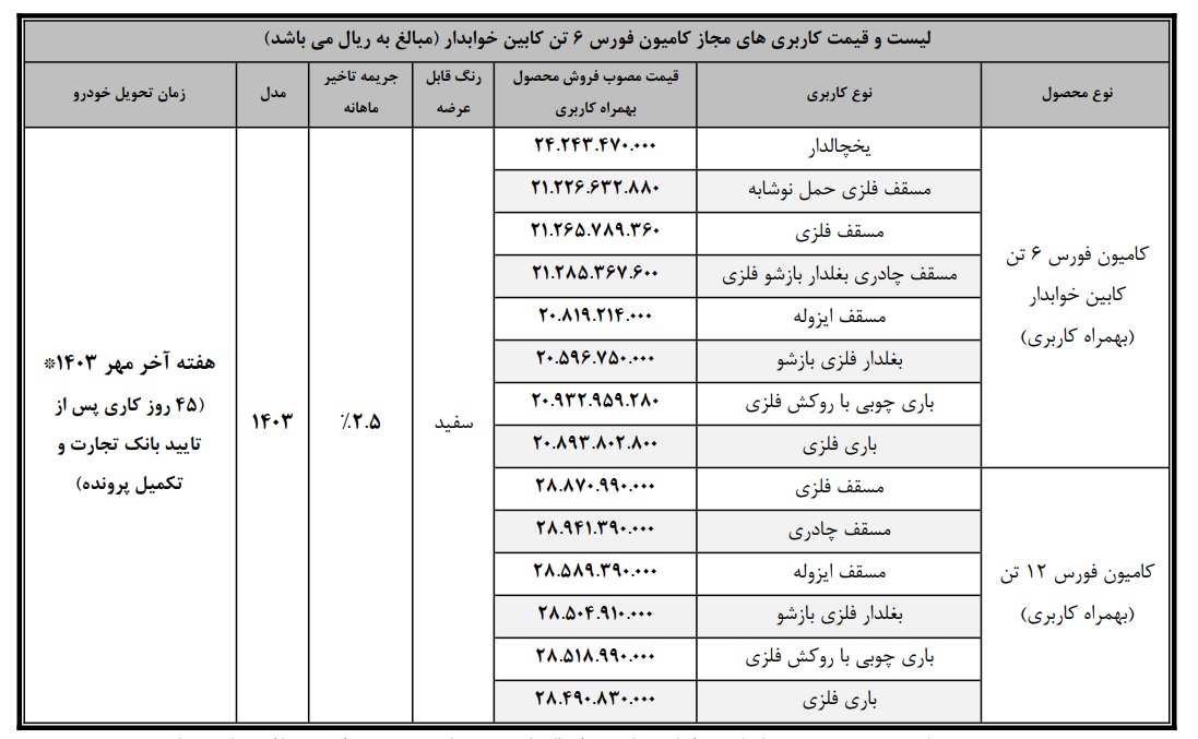 | فورس 6 تن خوابدار | 2,920,000,000 |