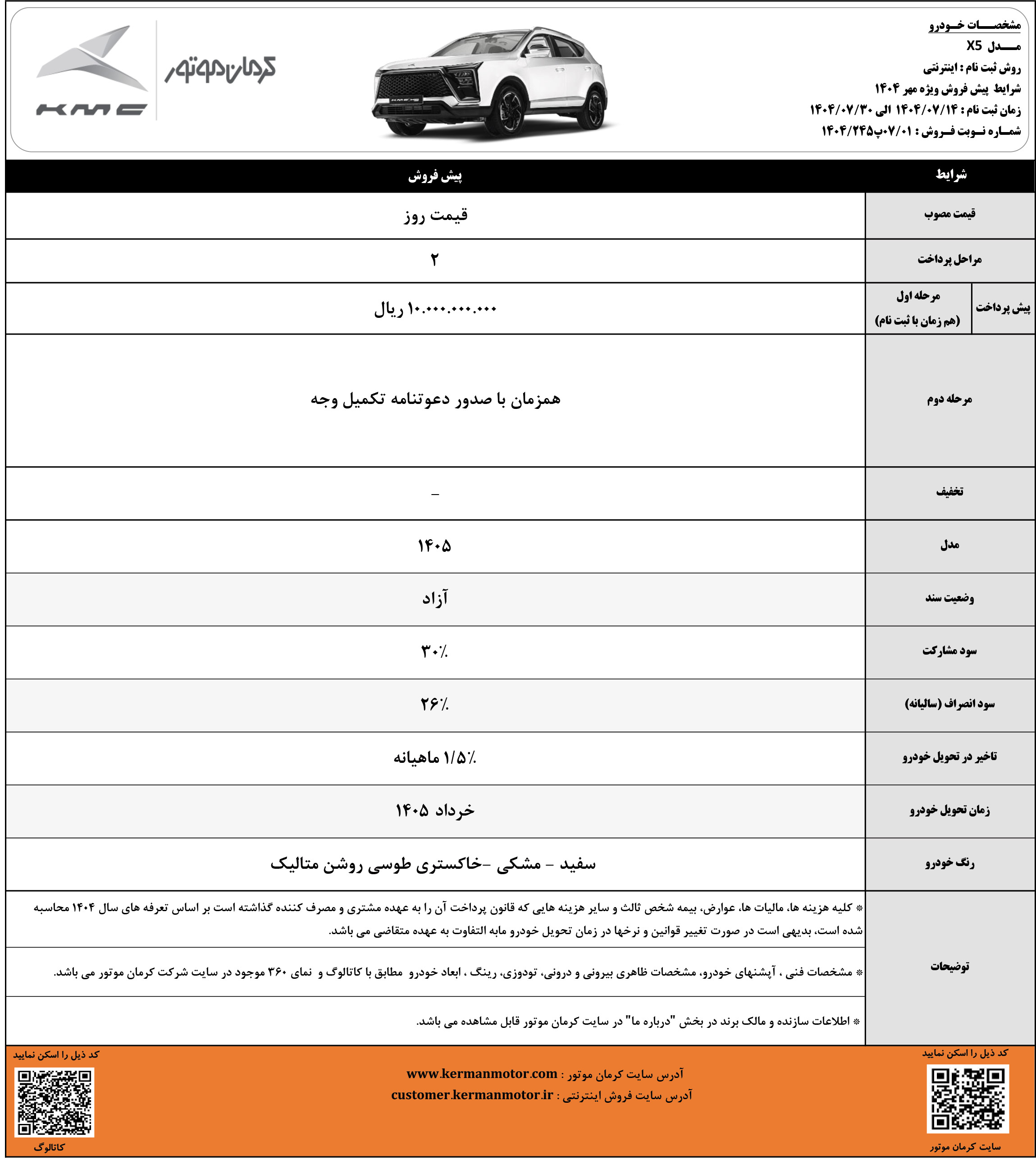 پیش فروش کی ام سی X5: مهر 1404