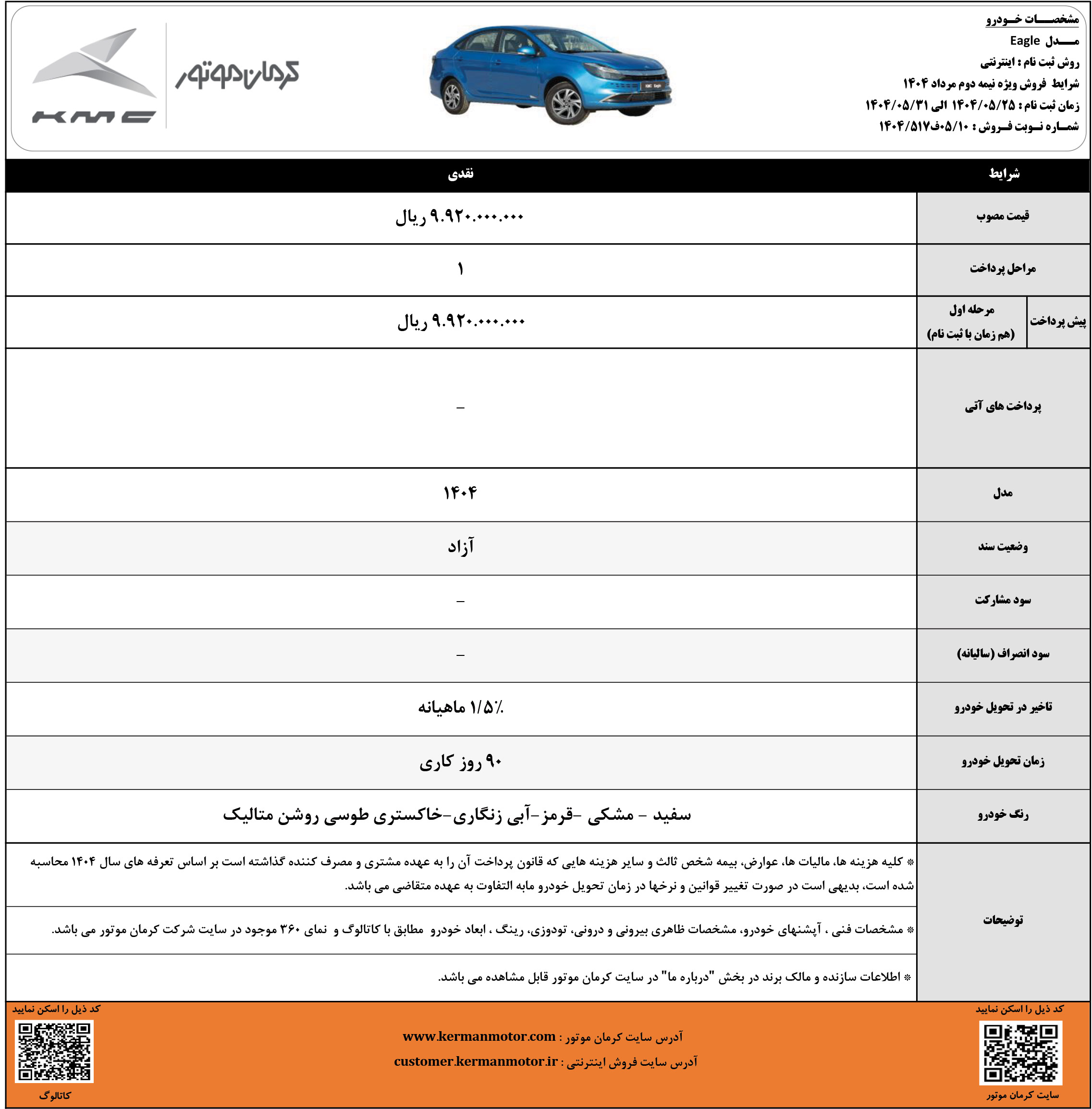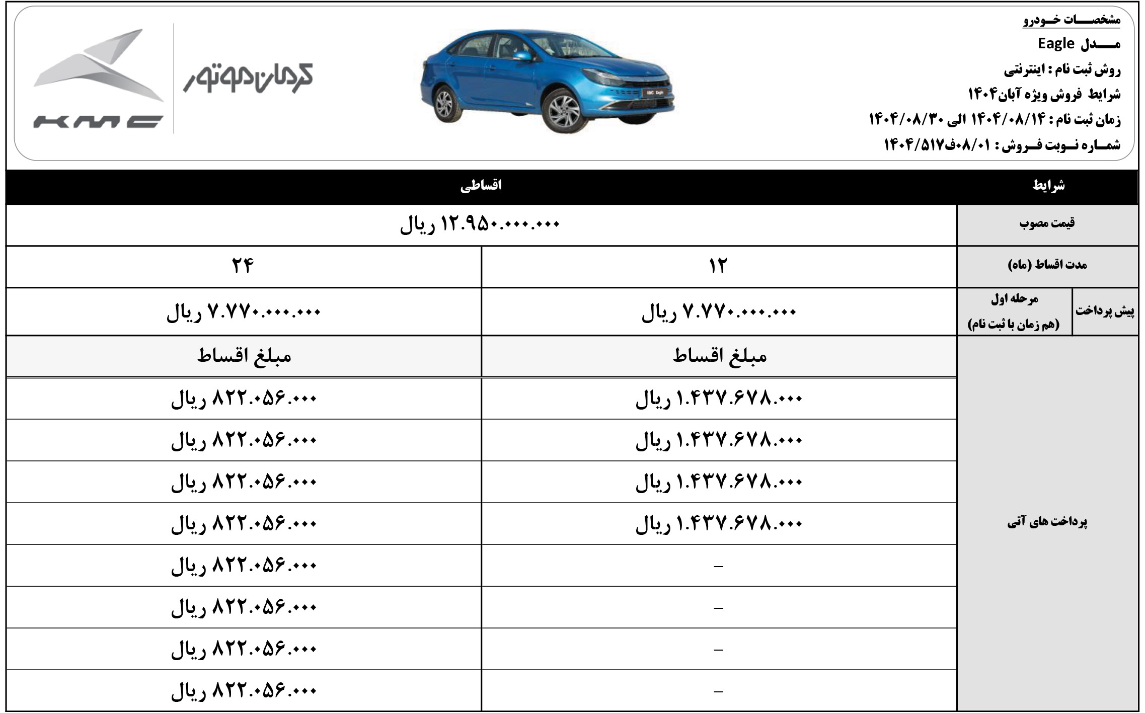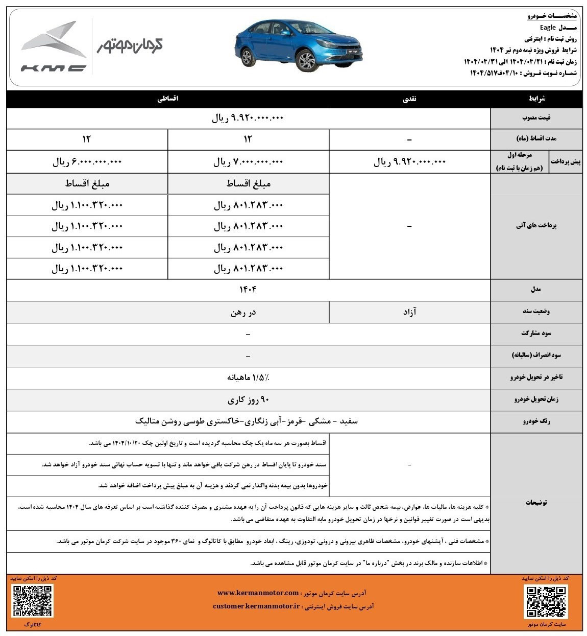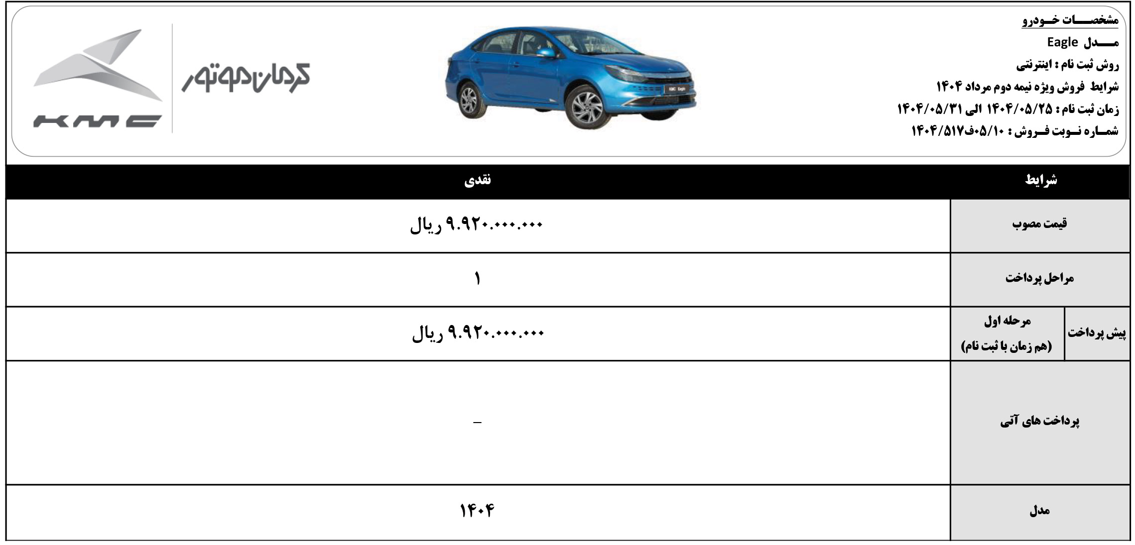 شرایط فروش نقدی و اقساطی کی ام سی ایگل (PDF)