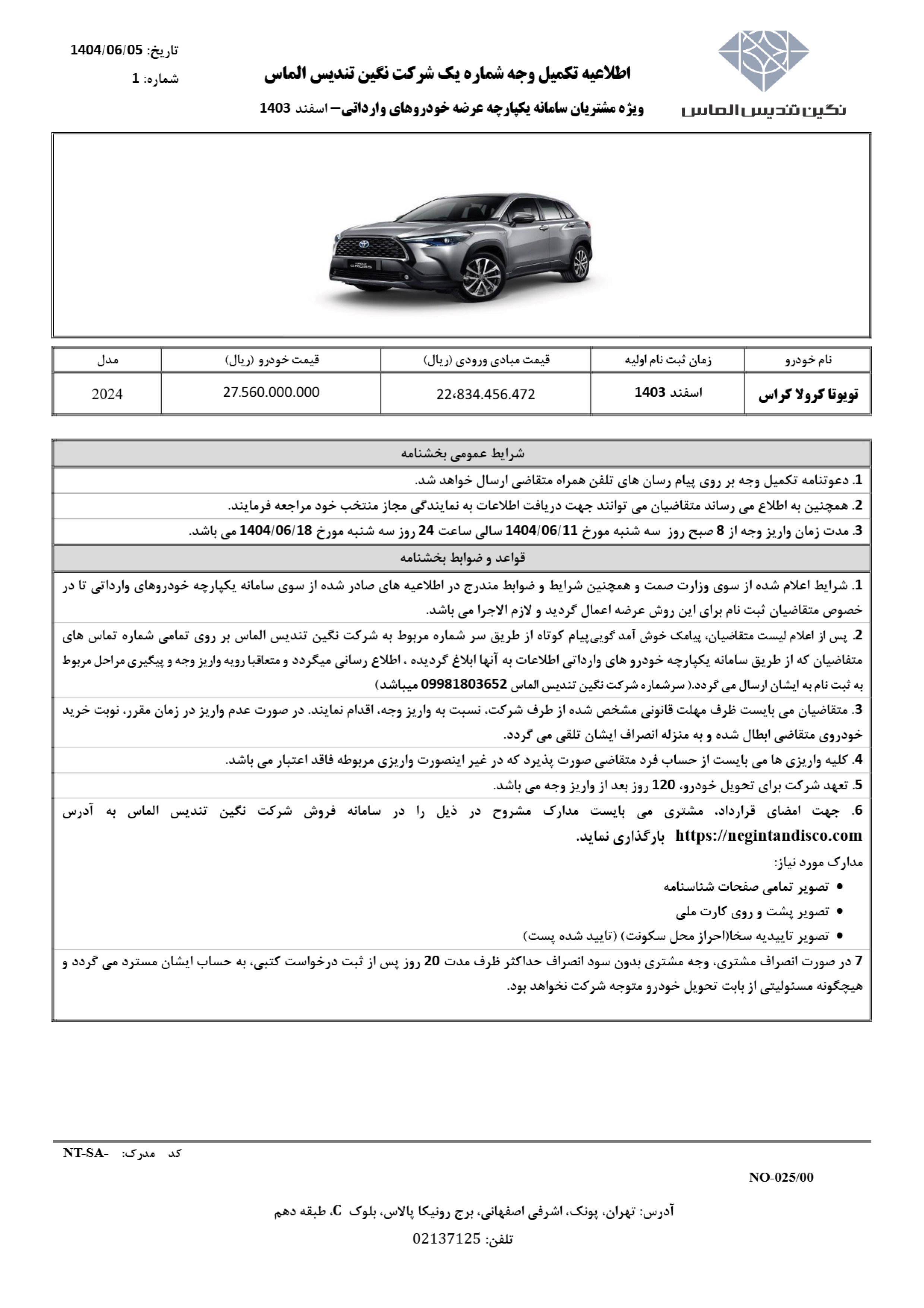 . بخشنامه فروش تویوتا کرولا نگین تندیس (PDF)