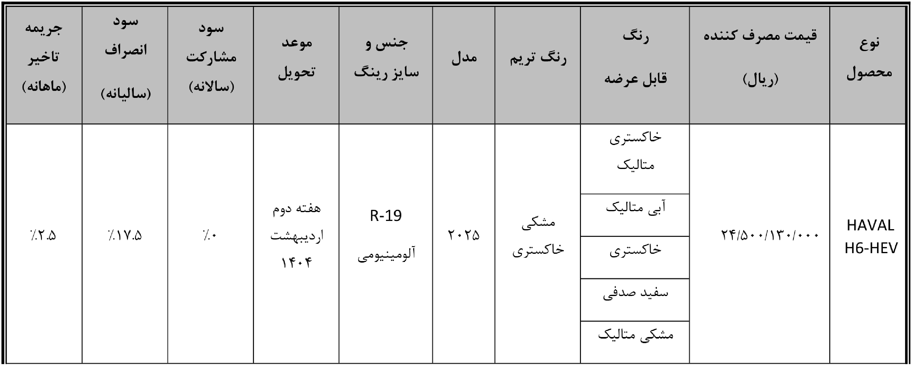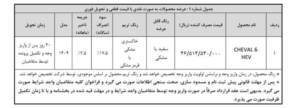 شرایط فروش شوال 6 HEV: اسفند 1404