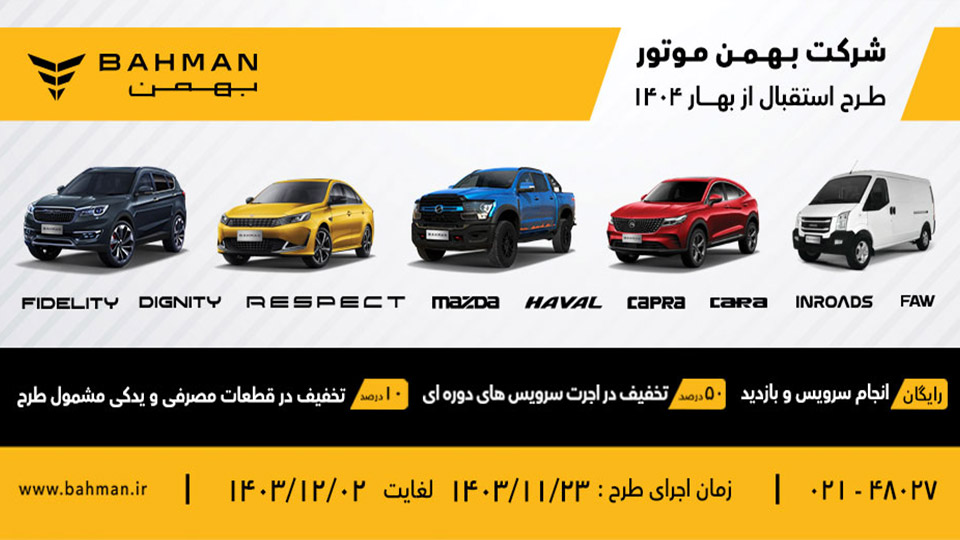 شرکت بهمن موتور، یکی از خودروسازان مطرح کشور، با اجرای طرح ویژه «استقبال از بهار ۱۴۰۴» شرایطی را فراهم کرده تا مالکان خودروهای این شرکت بتوانند با تخفیف‌های ویژه و خدمات رایگان، خودروهای خود را آماده فصل جدید کنند. این طرح که از ۲۳ بهمن تا ۲ اسفند ۱۴۰۳ اجرا می‌شود، شامل تخفیف روی قطعات مصرفی مشمول طرح، کاهش هزینه سرویس‌های دوره‌ای و سرویس و بازدید رایگان برای مشتریان است.