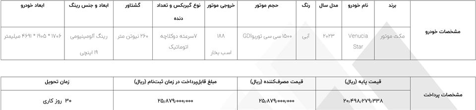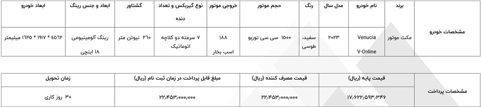 شرایط فروش ونوسیا: تیر 1403