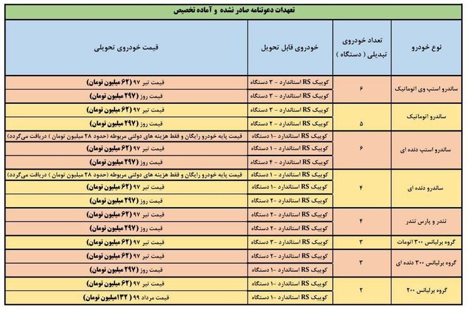 کوییک R تیپ S 252,500,000 340,875,000 35 درصد