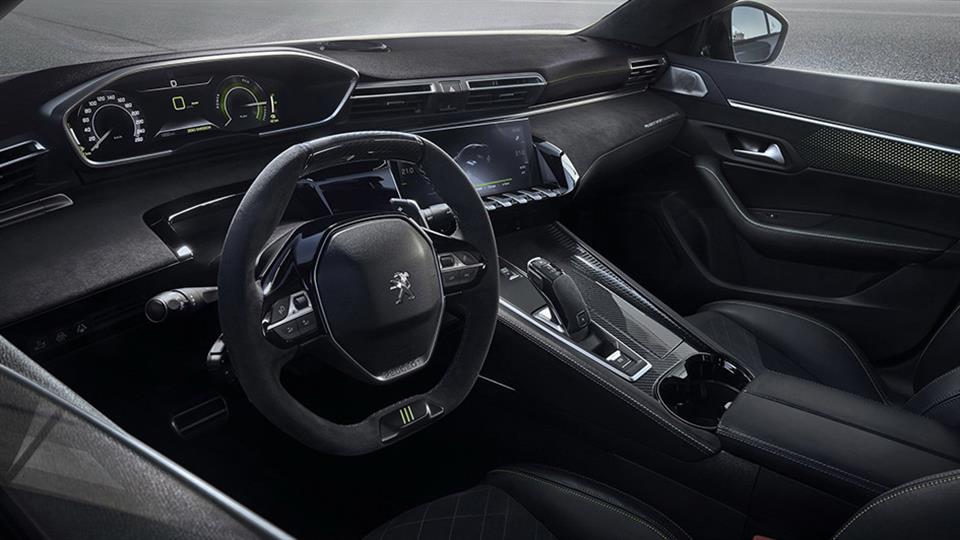 پژو در فضای کابین این سدان کانسپت هم سنگ تمام گذاشته است. صندلیهای جدید با ارگونومی بالا به همراه روکش چرم و آلکانترا، غربیلک فرمانی اسپرت و شکیل به همراه سه خط موربِ سبز رنگ در قسمت پایینی آن، صفحه پشت آمپر دیجیتالی 12.3 اینچی، صفحه نمایش لمسی 10 اینچی برای سیستم اطلاعرسانی و سرگرمی و فرم خاص اهرم تعویض دنده، همگی مواردی هستند که فضایی استثنایی در کابین کانسپت پژو 508 اسپرت انجینیرد به وجود آوردهاند.
