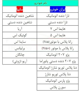 این خودروها انواعی از دنا، پژو ۲۰۷ و تارا است که به زودی قیمت آن ها به صورت رسمی توسط شورای رقابت اعلام میشود.