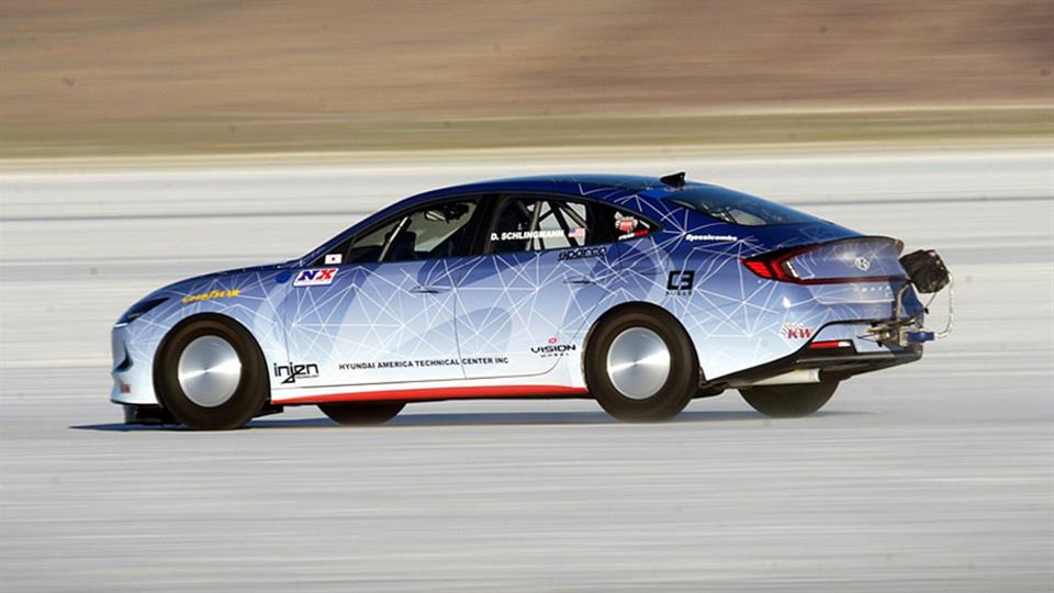 بخش مهندس هیوندای در اقدامی جالب دو خودروی پاک و معروف شرکت یعنی سوناتا هیبرید و نکسو هیدروژنی را برای ثبت رکورد سرعت درست مثل ابرخودروهای فوق سریع به دریاچه نمک بونهویل برد.