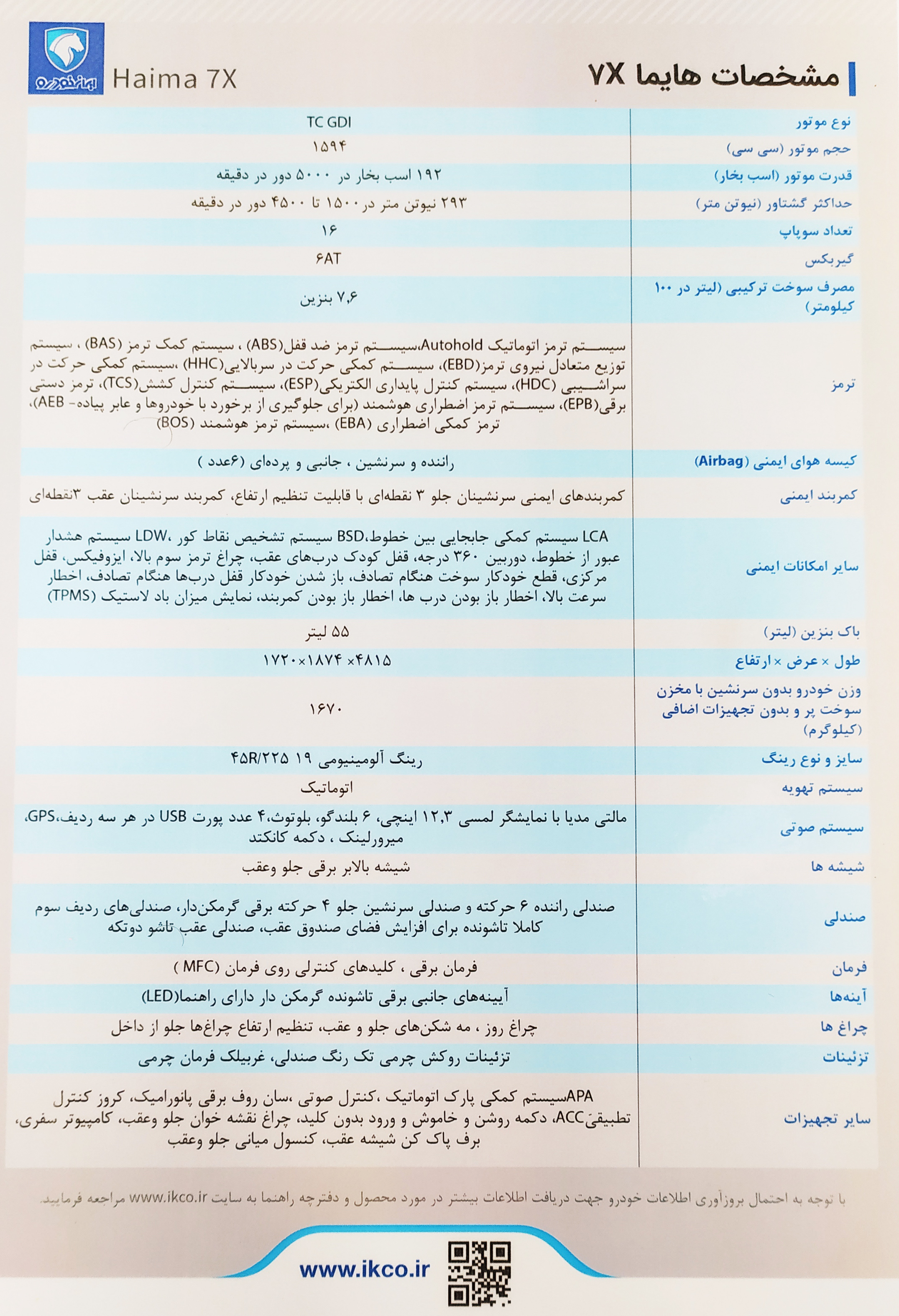 مشخصات فنی هایما 7X