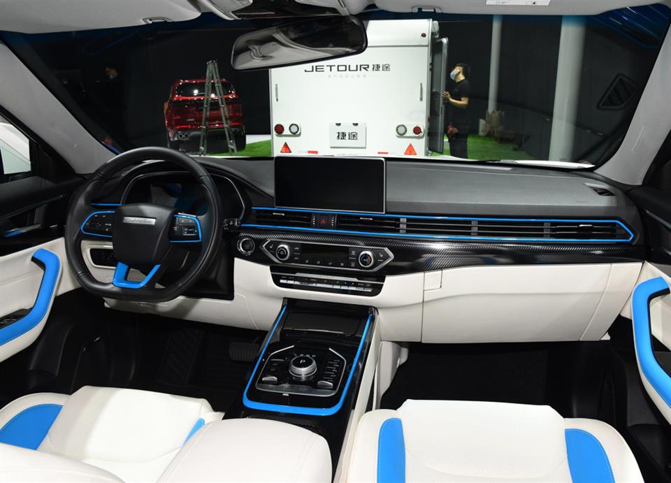 در کابین جتور X70S برقی، هیچ تغییری رخ نداده ولی چری با اضافهکردن رنگ آبی در برخی جزییات داشبورد، کنسول، فرمان و رودریها، هم خواسته برقی بودن این خودرو را نشان دهد و هم خواسته تغییری جدید، در کابین این خودرو داده باشد.