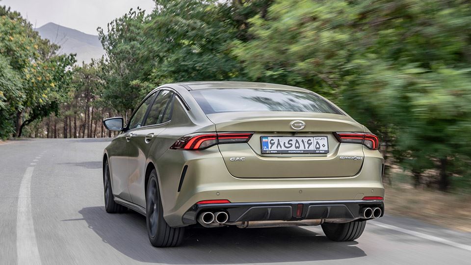 حقیقتا چندسالیاست که چینیها در طراحی ظاهری پیشرفتهای چشمگیری داشتهاند، اما جی ای سی یک قدم فراتر گذاشته و خودرویی 4 درب صندوقدار را به یک نماد اسپرت برای برند خودش تبدیل کرده. رنگ مات این نمونه از امپو و هایلایتهای زرد چراغها که در سپر جلو و کفشکهای ترمز تکرار شده، در شاخص بودن این طراحی بسیار مؤثر بوده است.