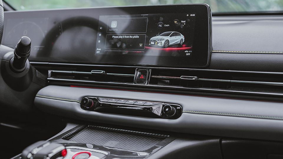کیت اگزوز صدای بم و نهچندان بلند داشت که در عین جذابیت، مزاحمت و توجه زیادی هم جلب نمیکند. مود رانندگی هم امکان تنظیم همه چیز را به شما میداد. پدالها، فرمان، اطلاعات نمایش داده شده در نمایشگرها و غیره. نمایشگر جلوی راننده علاوه بر تغییر ظاهر در وضعیتهای مختلف رانندگی، اطلاعات مختلفی را به شما نشان میداد؛ مانند G-meter (نمایشگر شتاب خروج از مرکز) که در پیستهای مسابقه امری کارآمد است.