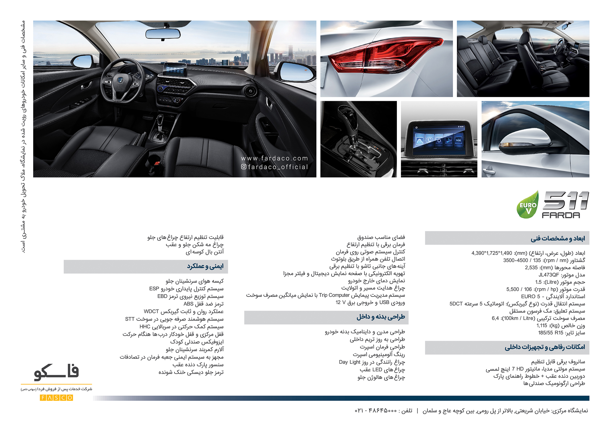 طبق اطلاعات منتشر شده از سوی خودروسازی فردا، سدان جدید فردا 511 با آپشنهای زیر بدست خریداران ایرانی میرسد: