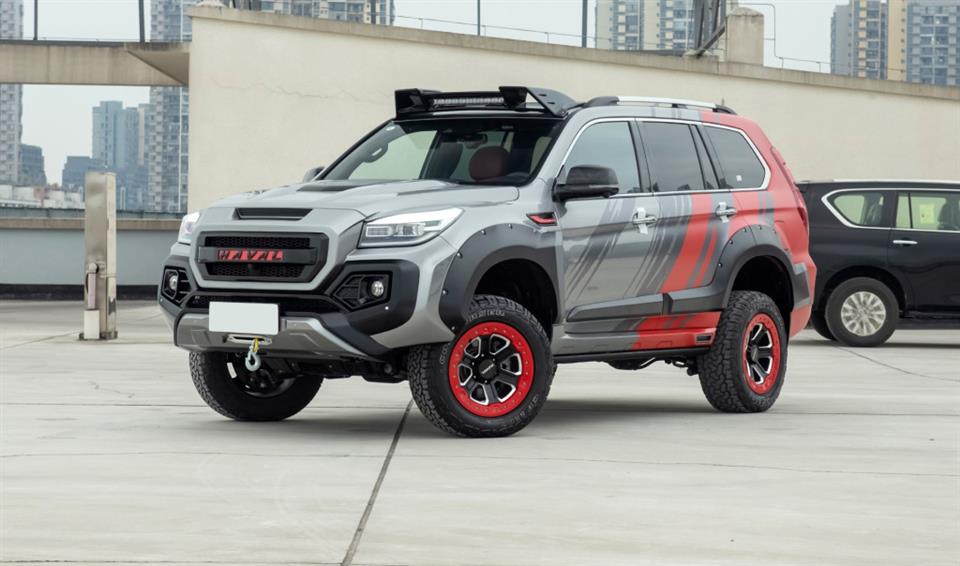 کیت بدنه لورینزر، آنقدر حجیم و عجیب است که فقط از روی چراغهای این خودرو میتوانید به هاوال بودنش پیببرید. سیستم تعلیق، هم تغییر کرده و هم ارتفاعش بیشتر شده است. روی سقف خودرو نیز پکیج چراغهای LED به چشم میخورد.
