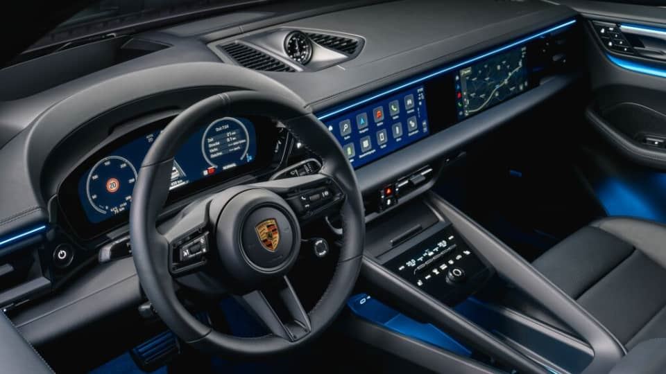 نمایشگر ۱۲.۶ اینچی صفحه کیلومتر خمیده است و یک نمایشگر ۱۰.۹ اینچی مرکزی برای اطلاعات و سرگرمی نیز تعبیه شده است. این دو نمایشگر به طور استاندارد برای ماکان برقی درنظر گرفته شدهاند. اما مشتریان میتوانند به طور اختیاری، نمایشگر سرنشین جلو را نیز دریافت کنند.