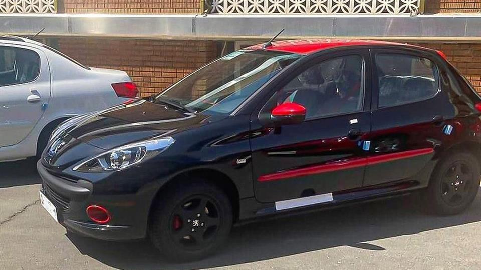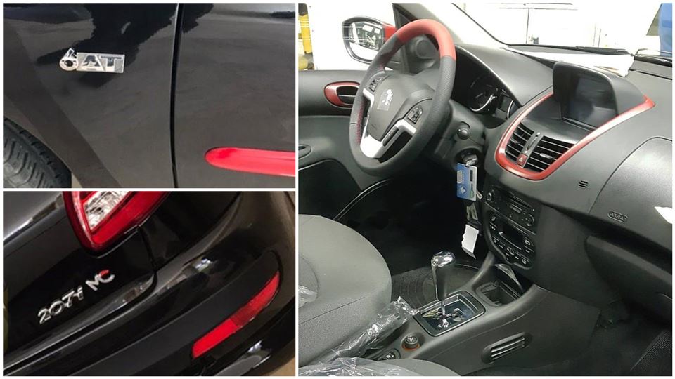 همانطور که در گوشه تصویر فوق مشاهده میکنید، ایران خودرو در کنار پژو 206 پانوراما سفید رنگ، یک دستگاه پژو 207 هاچبک مشکی رنگ را هم قرار داده است که سقف قرمز دارد.
