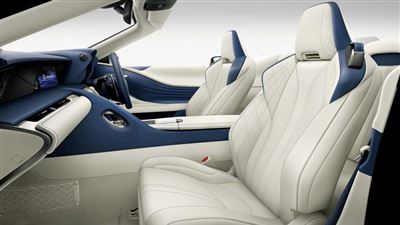 کسانی که لکسوس LC500 کانورتیبل را انتخاب میکنند، میتوانند آن را با سقف پارچهای آبی Marine خریداری کنند که در کنار فضای داخلی سفید و آبی، بسیار زیبا به نظر میرسد. در این تریم داخلی، صندلیها، تونل گیربکس و قسمت پایینی داشبورد، با رنگ سفید و سایر قسمتهای کابین با چرم آبی پوشیده شده است. در نهایت نیز کالیپرهای ترمز نارنجی رنگ، زیبایی خودرو را تکمیل میکنند. باید منتظر ماند و دید که این بهروزرسانیها در سایر بازارها نیز عرضه میشوند یا خیر.