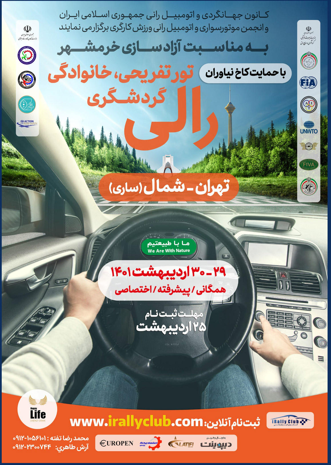 اردیبهشت 1401: با اعلام کانون جهانگردی و اتومبیلرانی ایران و به مناسبت سالروز آزادسازی خرمشهر، رالی گردشگری، تفریحی و خانوادگی «تهران-شمال» با حمایت کاخ نیاوران برگزار میشود: