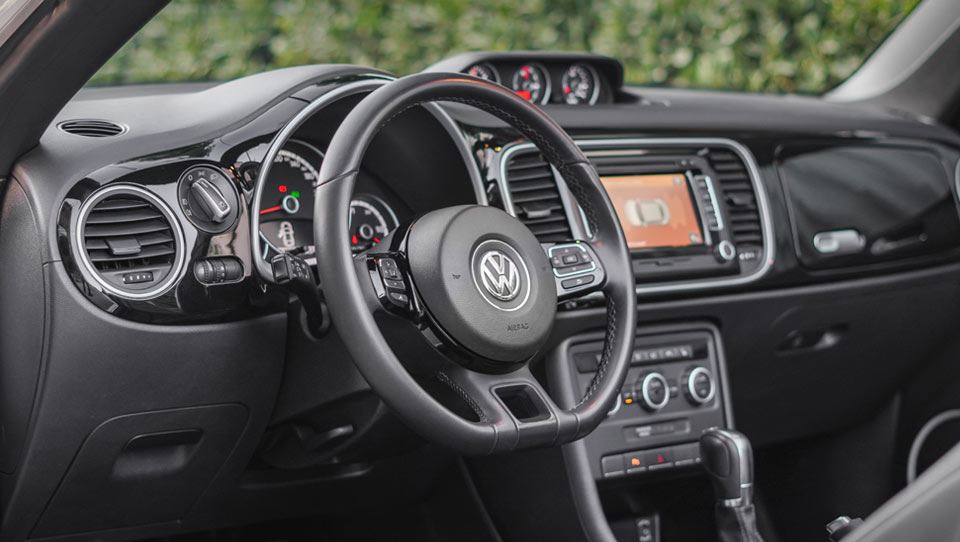 اگر با طراحی فانتزی بیرونی خودرو رابطهای برقرار نکردید، پس اصلاً درِ ماشین را باز نکنید. اینجا دیجیمونها حمله کردهاند. نه اینکه زشت و زننده باشد. فقط اینکه خیلی زیادی شبیه به بیرونش است. داخل اتاق بیتل غیر از لوگوی VW فولکسواگن واقعاً خط و خطوط تیز دیگری پیدا نمیکنید.