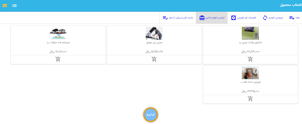 | دوربین عقب با مانیتور آینهای | 1 میلیون و 300 هزارتومان | 30 هزارتومان |