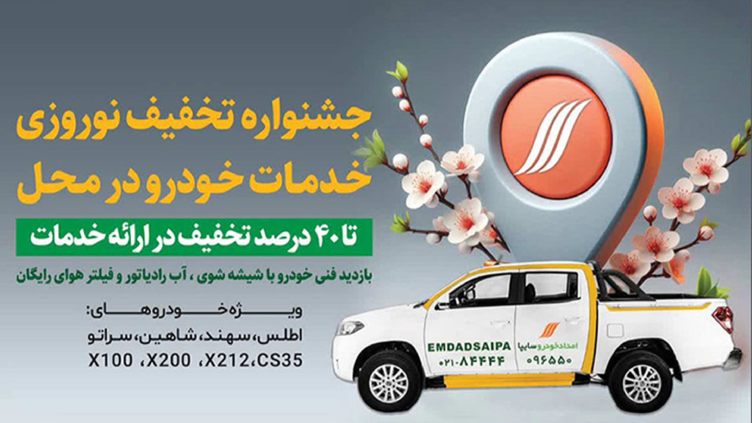 اسفند 1403: جشنواره تخفیف خدمام نوروزی شرکت امداد خودرو سایپا، از اول اسفندماه 1403 تا 15 فروردین 1404 ادامه خواهد داشت و دارندگان خودروهای گروه سایپا میتوانند ضمن انجام بررسیهای فنی پیش از سفر، از تخفیفهای ویژه تا سقف 40 درصد بهرهمند شوند.