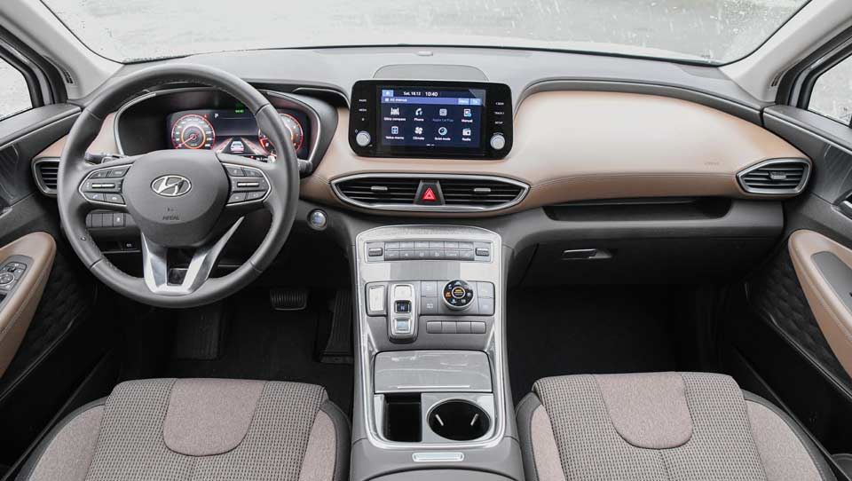 اگرچه فرم چندوجهی این دریچهها با دقت روی فرمان هم اجرا شده ولی خداوکیلی این زوایا هیچ جای دیگری از خودرو دیده نمیشوند. هیوندای در این مورد هم مستقل عمل کرده و خواسته کابین سانتافه شخصیت خاص خودش را داشته باشد. مهم این است که وقتی پشت فرمان این خودرو مینشینیم، باید حس یک مدل 2022 بهمان دست بدهد که میدهد.