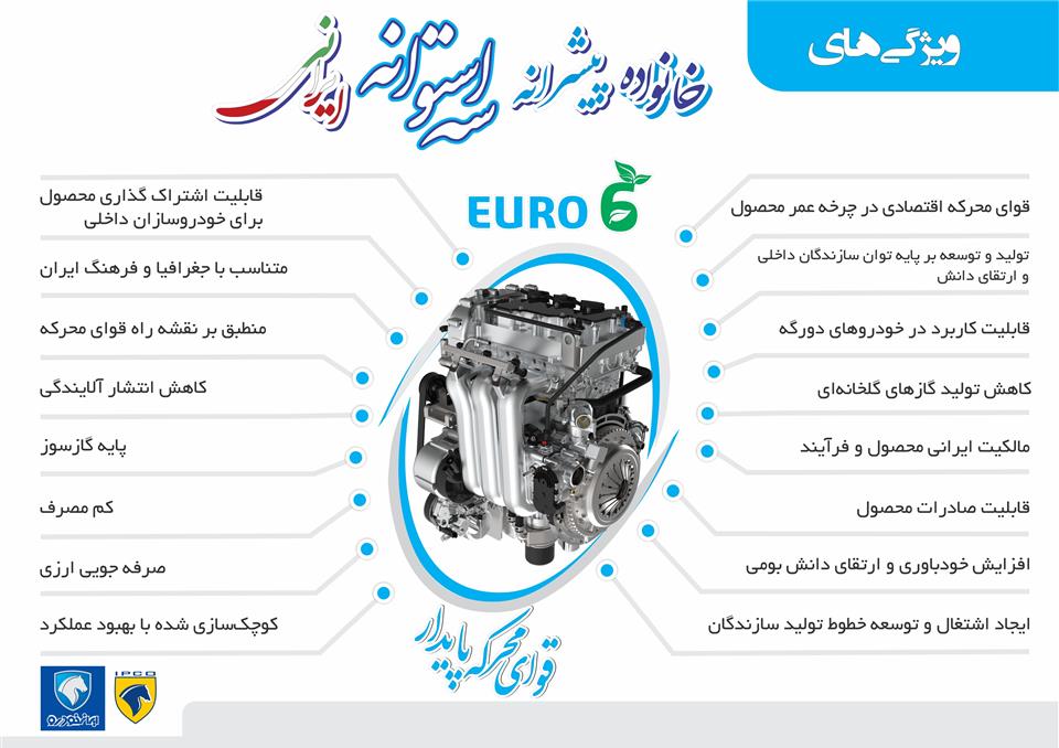 6- موتور سه استوانه، در واقع همان نسل دوم موتورهای EF ایران خودروست که با اهداف زیر، طراحی و تولید شده است: