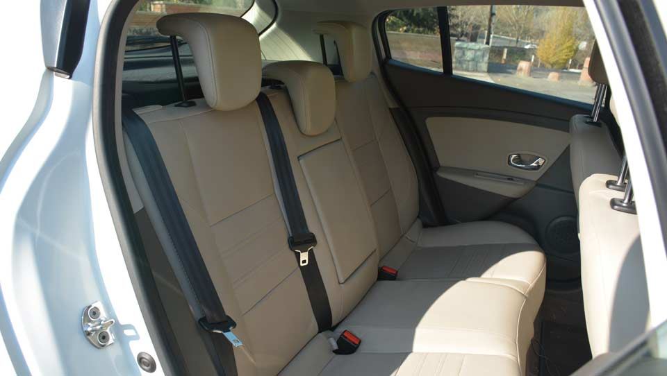 در این بین نشانگر نیمه دیجیتال پشت آمپر و امکانات قابلقبول (البته فقط در نسخه (E4 باعث میشوند که احساس نکنیم در خودرویی قدیمی قرار گرفتهایم. البته من شخصاً عقربههای سنتی را به کلاستر فانتزی دیجیتالی کار شده روی اسکالا ترجیح میدهم اما باید اعتراف کنم که نشانگرهای پشتآمپر خوانا میباشند. جای پا و سر نیز به نسبت آنچه از یک هاچبک انتظار میرود قابل قبول است و فضای کافی برای دو بزرگسال بلندقامت و دو نفر با قد متوسط وجود دارد؛ البته صندلیها چندان راحت نیستند و مثل تمامی محصولات اقتصادی رنو با فرم نیمکتی خود، زودتر از آنچه که باید و شاید بدن انسان را خسته خواهند نمود. صندوق عقب هم چیزی در حدود 368 لیتر گنجایش دارد که برای خودرویی در این ابعاد یک عدد معمولی به حساب میآید؛ البته با خواباندن صندلیهای عقب میتوان این فضا را تا 1162 لیتر افزایش داد ولی در مجموع هاچبکهای جادارتر از این هم دیدهایم!
